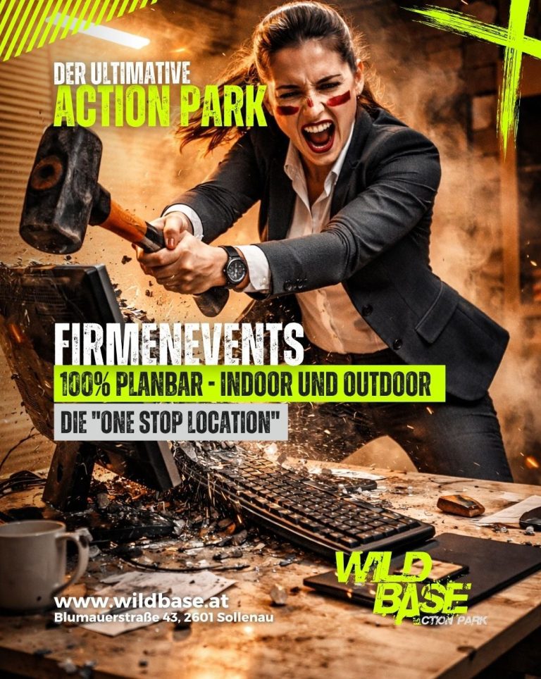 Der Wild Base-Action Park ist die perfekte Location für spannende und unvergessliche Firmenevents jeder Art! Hier treffen Erlebnis, Spaß und ein starkes "Wir-Gefühl" aufeinander – kombiniert mit einem actionreichen Programm, das den Teamgeist stärkt und für jede Menge Adrenalin sorgt.