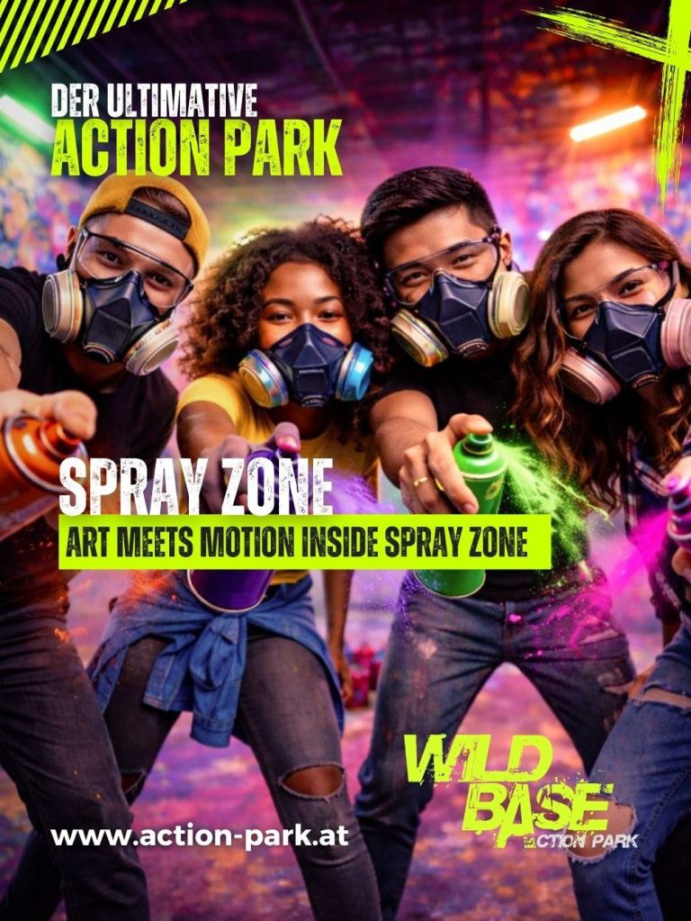 In der SPRAY ZONE im Wild Base Action Park erschaffst du mit echten Spraydosen dein eigenes Kunstwerk – laut, bunt und voller Energie.