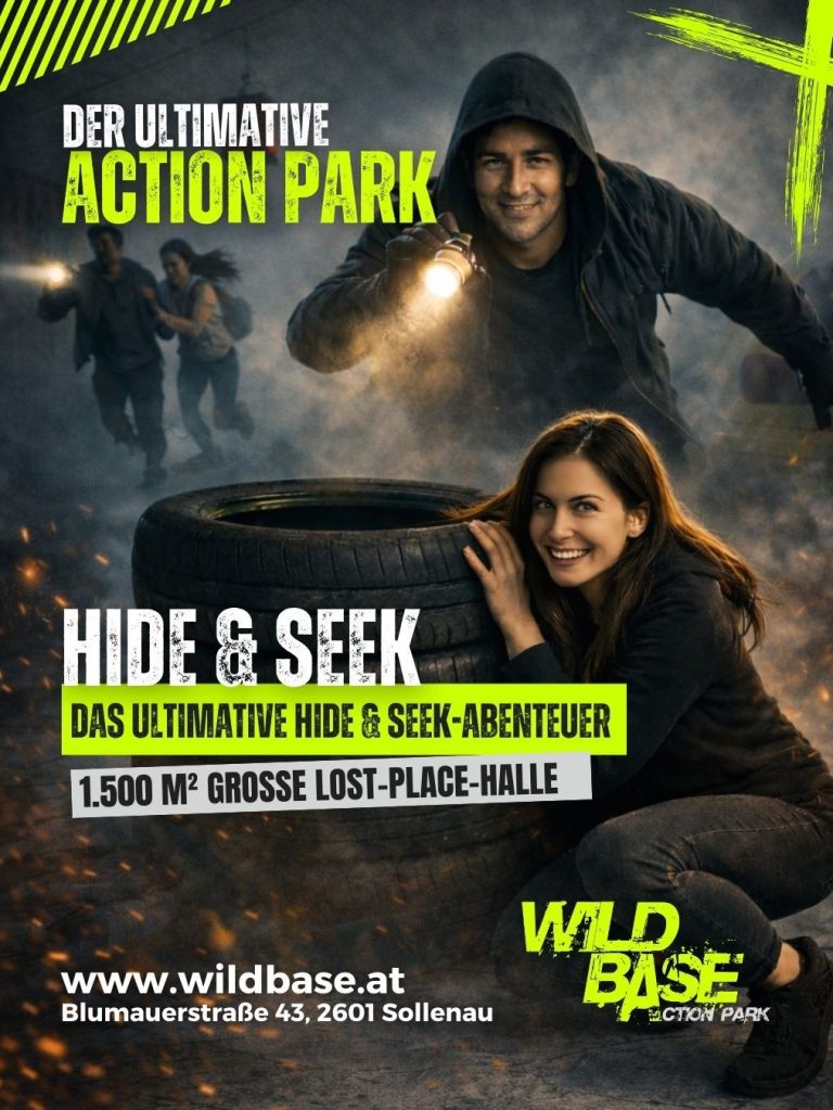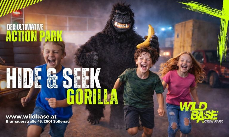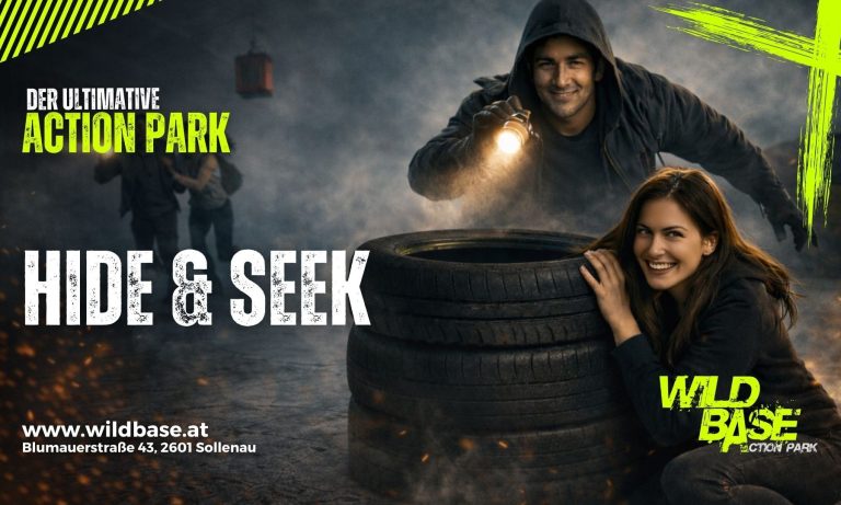 Bleibt leise, bewegt euch geschickt und verschmelzt mit der Umgebung – denn der Suchende ist euch dicht auf den Fersen! Wer findet das perfekte Versteck und bleibt unentdeckt? Spannung, Strategie und Adrenalin pur erwarten euch im Wild Base-Action Park!
