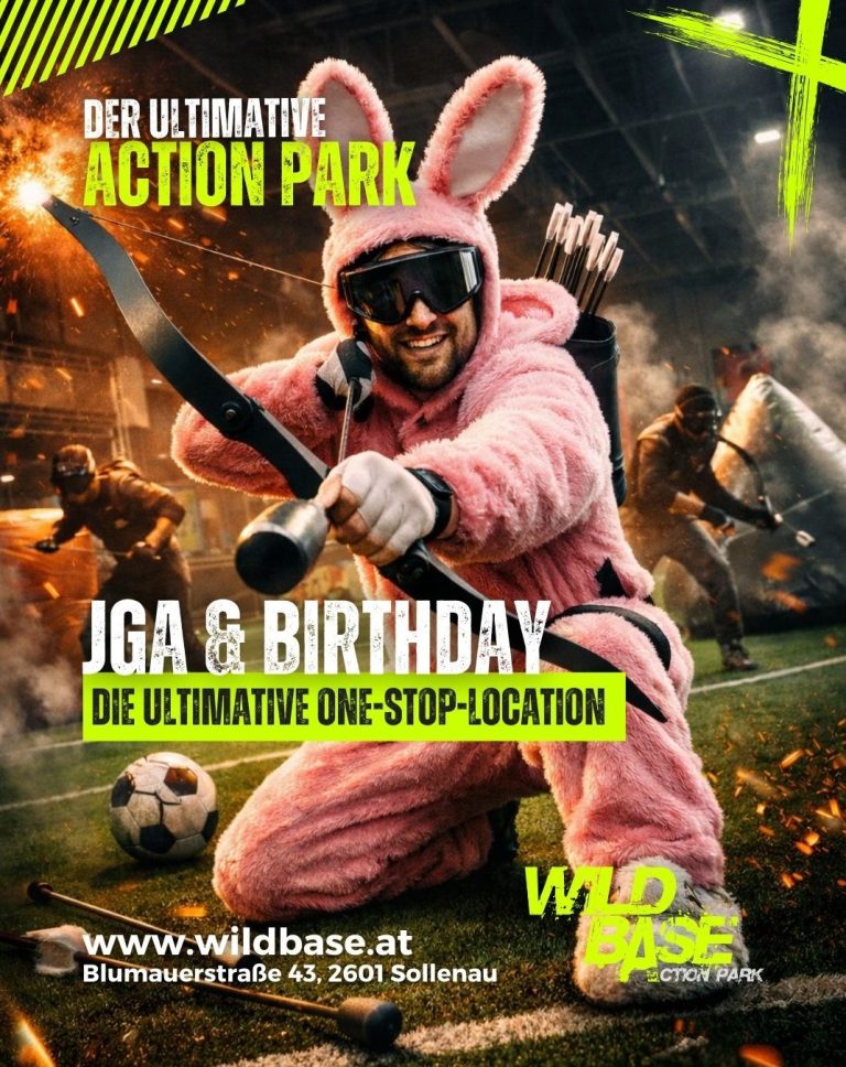Die Kombination aus unvergesslichen Erlebnissen, jeder Menge Spaß und Action macht den Wild Base-Action Park zur perfekten Location für Polterer- und Geburtstagsfeiern.
